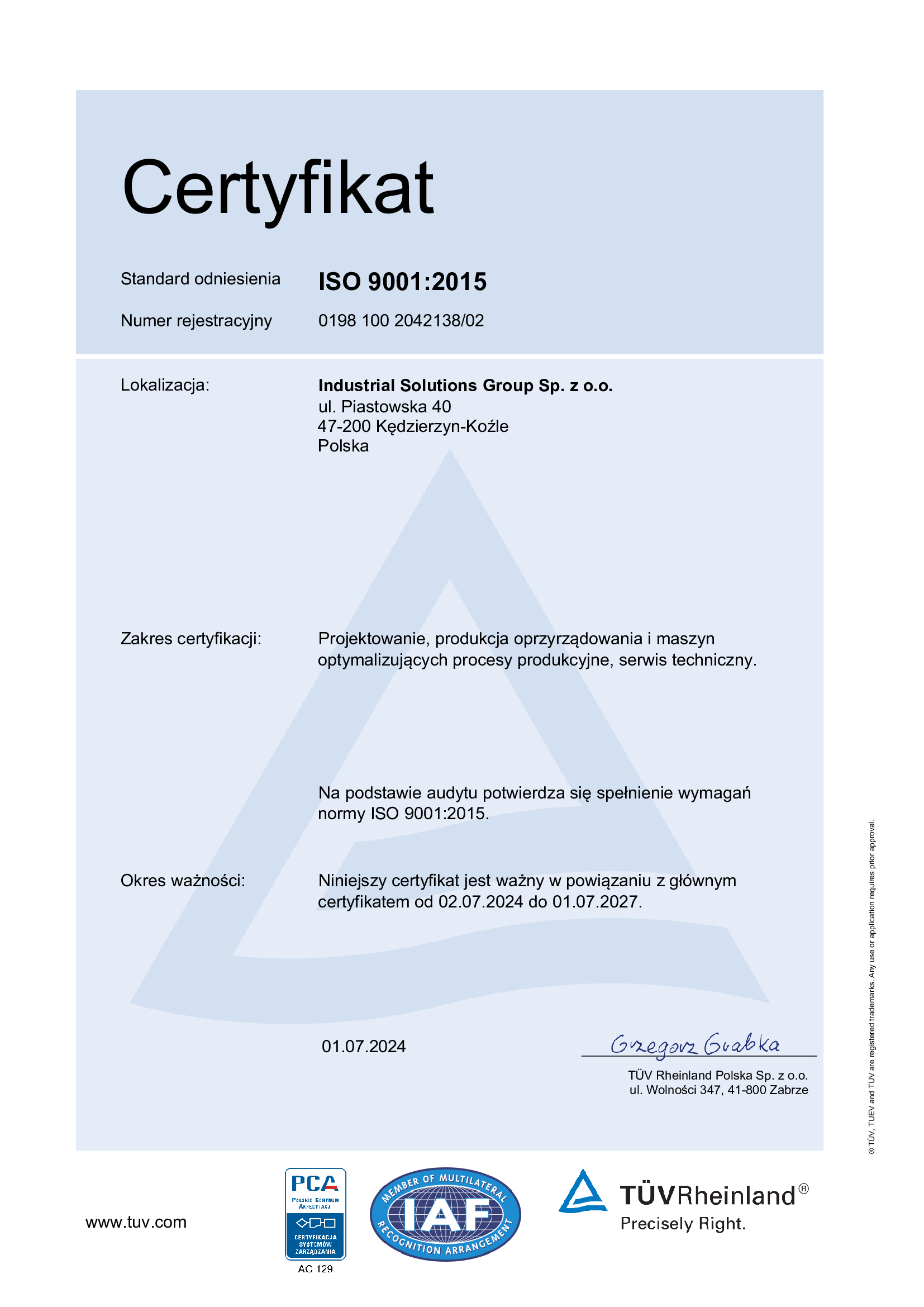 Industrial Solutions Group Sp. z o.o. has been operating in Poland since 2013. We specialize in optimizing manufacturing processes. Our offer is primarily aimed at plants looking for advanced technical support, comprehensive service and high quality products. Our products are used in foundry and metalworking, as well as forging. To meet our customers’ expectations, we established the Innovative Solutions division in 2017. Passion, commitment and experience allow us to design and build modern, innovative equipment tailored to the individual needs of our customers. We create for customers what they need so that their time and resource expenditure is optimized. The most important thing for us is customer satisfaction and the feeling of a job well done.