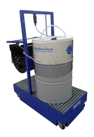 Mobile coolant distribution station type MRD-200 is used to produce a solution of a given concentrate with water, in the proper concentration desired by the User in the range of 0.5%-10% (thanks to the use of manual mixer ZatriX), and then to manually fill tanks (machining or other applications) with the solution, at a maximum distance of 30m from the water connection.