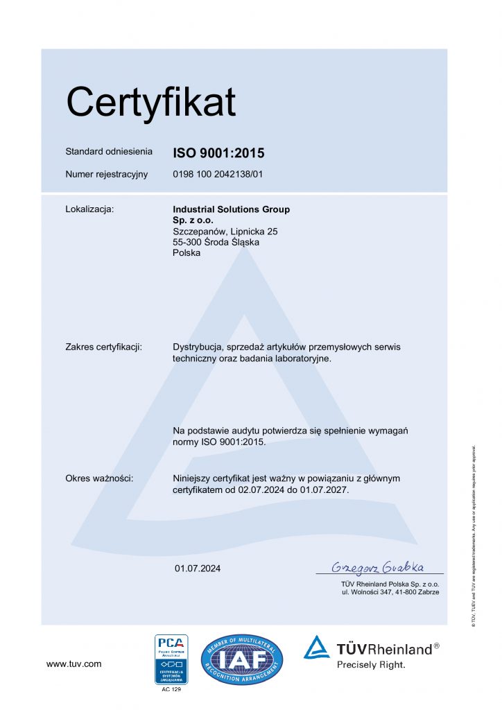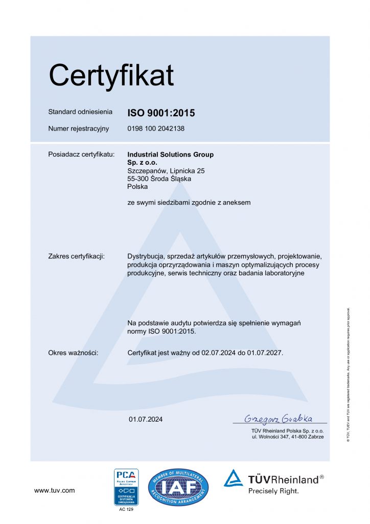 Dzięki spełnianiu wymagań normy ISO 9001:2015 nasi obecni i przyszli klienci mogą mieć pewność, że jakość dostarczanych przez nas produktów i usług jest na najwyższym poziomie.