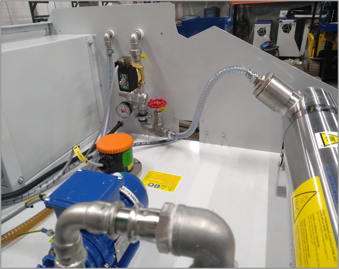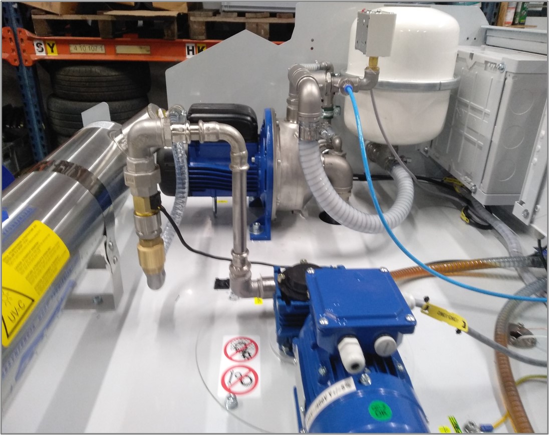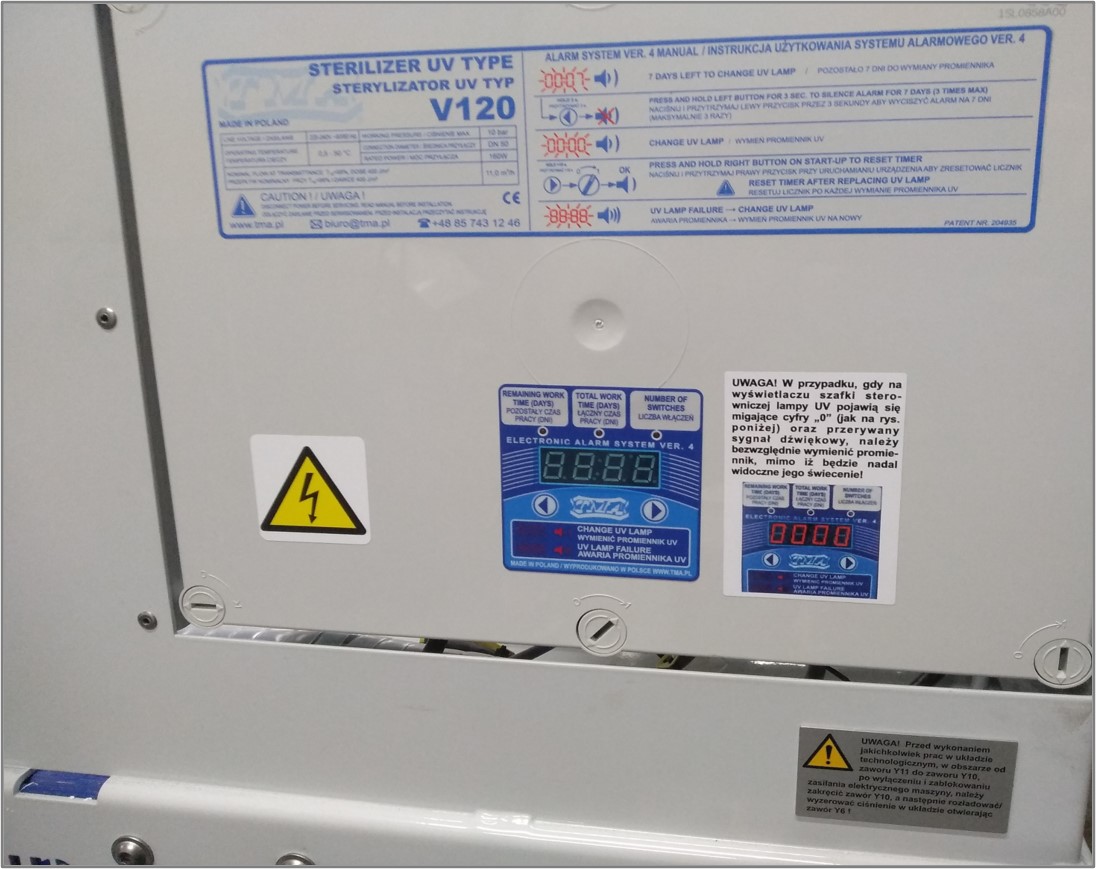 ⦁ Usuwanie mikrobiologii w wodzie doprowadzanej do maszyny poprzez naświetlanie promieniami UV, za pomocą sterylizatora/lampy UV